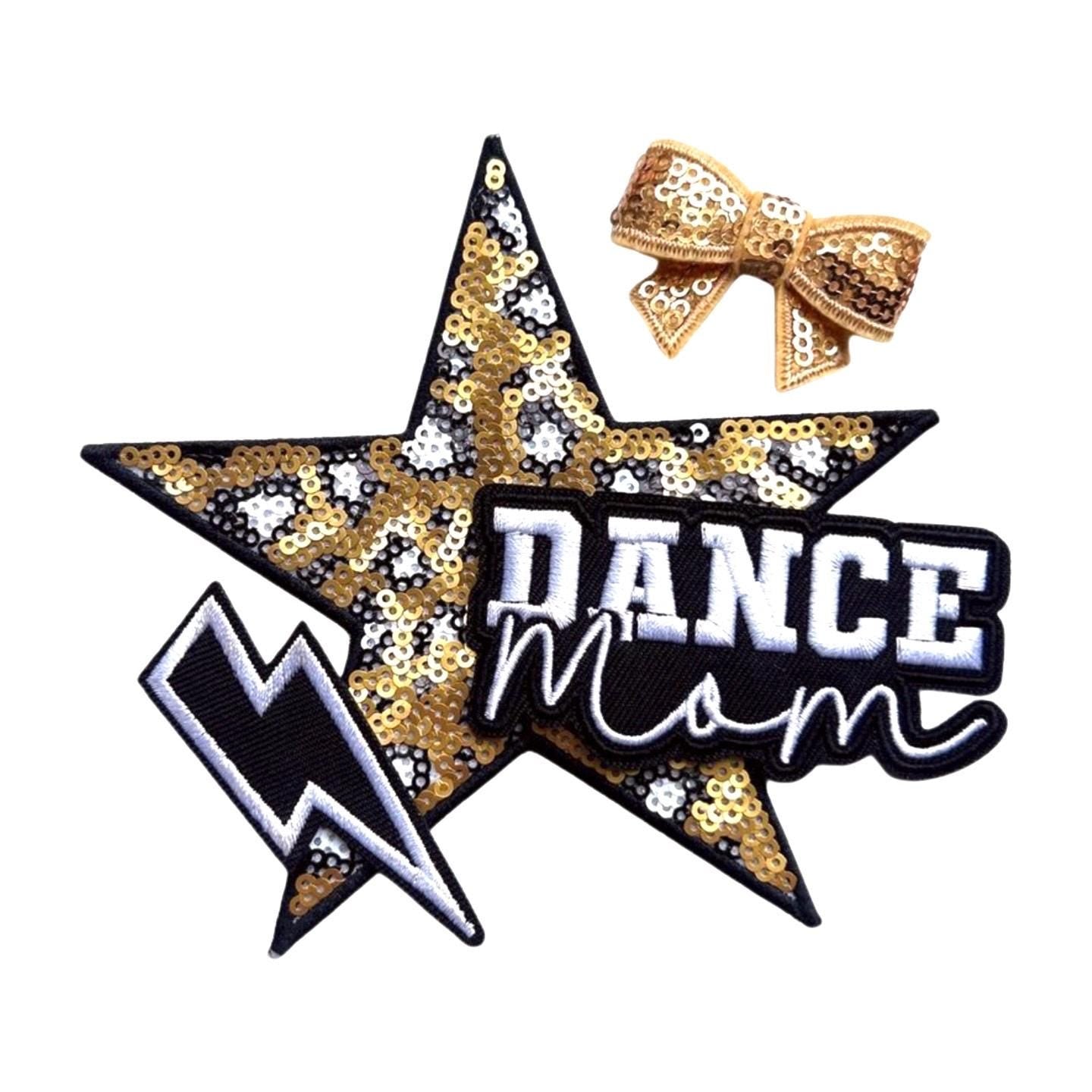 Dance Mom Embroidered Iron-On Patch Bundle: Star, Lightning Bolt, Bow